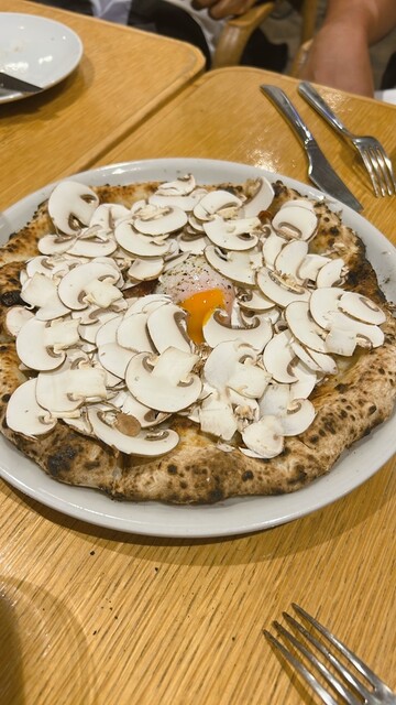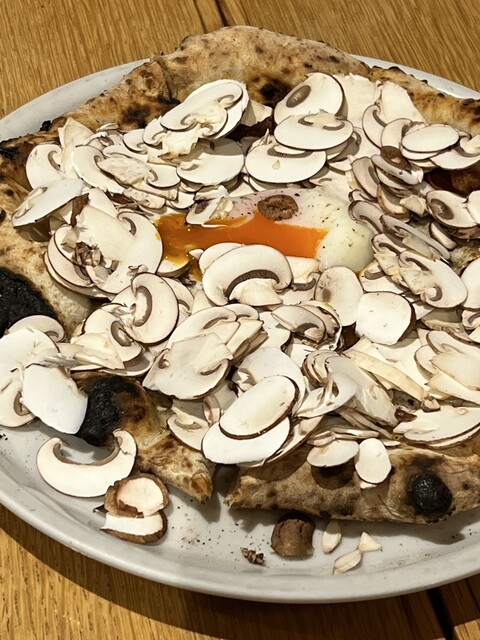 この日は友人とのディナー。せっかくなら何か美味しいものを食べたいねという話になり、「今日はピザが食べたいね」と一致。さっそく食べログで検索してみたところ、写真からして美味しそうなこちらのお店を発見。中でもキノコのピザが非常に気になり、迷わず行ってみることにしました。