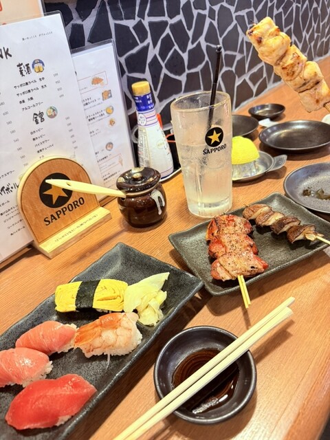 寿司を謳ってる居酒屋さんですが、おいしいけど100円寿司って感じ。焼き鳥も可もなく不可もなく。