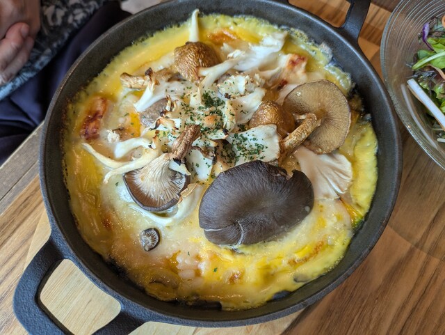 家族が選んだドリアも、キノコが見た目にもたっぷり。二人とも満足でした。