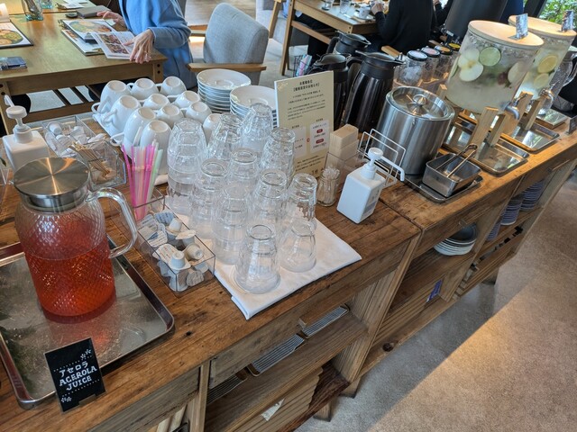 30種のドリンクバーは平日は無料、土日祝は280円。お茶の種類がたくさんあって迷います。ビワとマスカットのリーフティーは甘い香りが楽しめました。