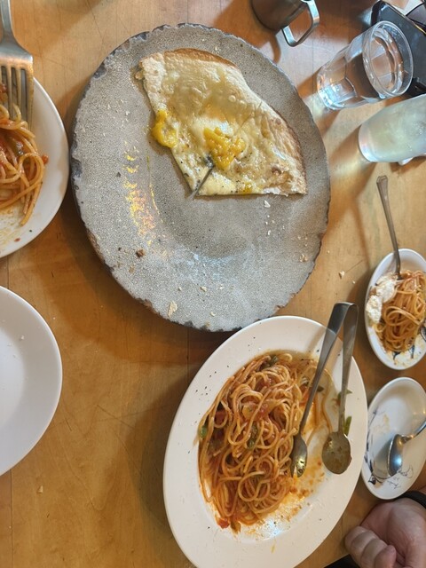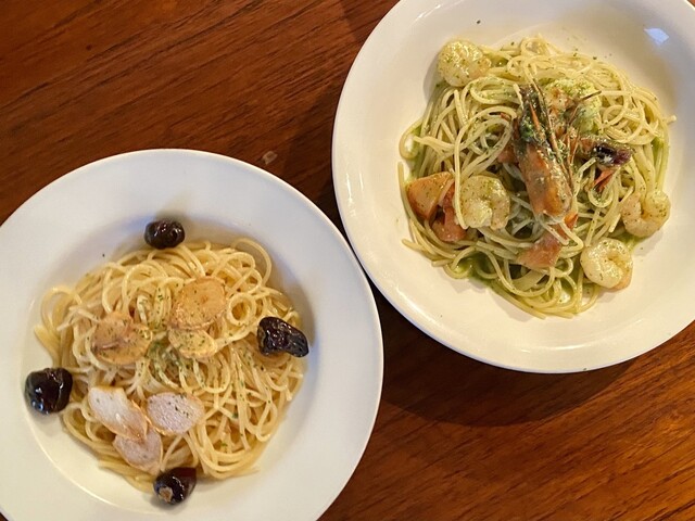2人でランチのパスタとリゾットをシェアして頂きました。リゾットが黒米でプチプチして美味しかったです。