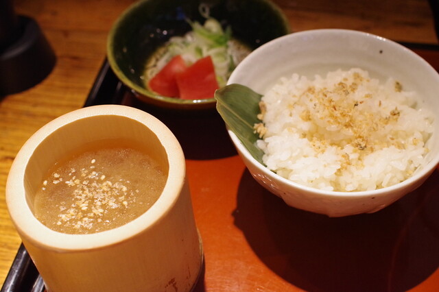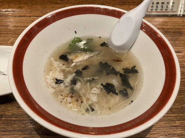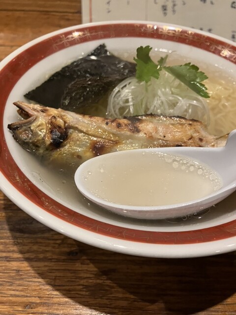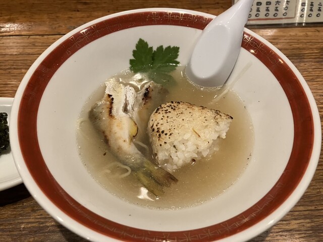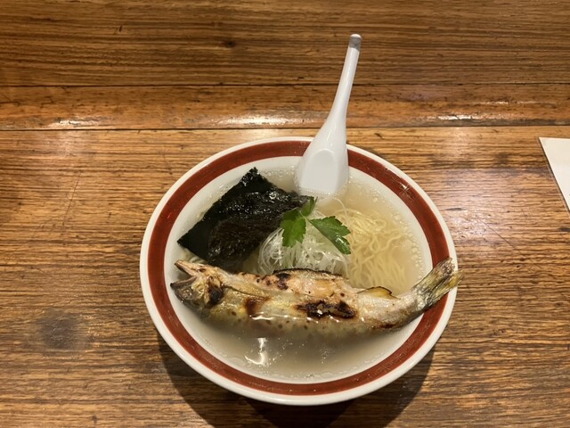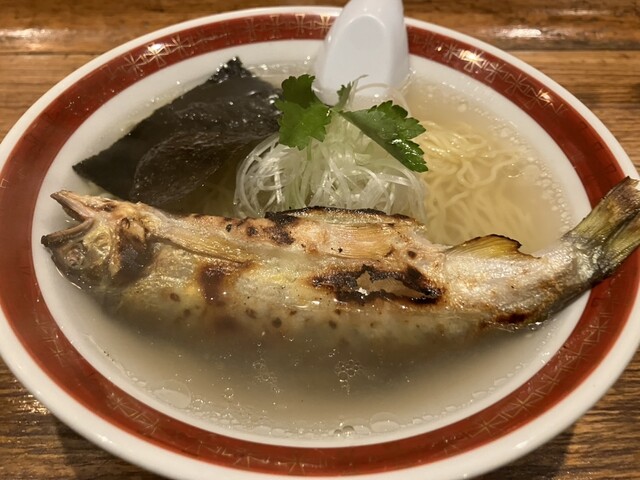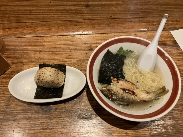二子玉川には鮎が丸ごと一匹入ってるラーメンがあるんだと同僚から聞いていたので、二子玉川に仕事に来たついでに立ち寄りました。平日の12時前、待つことなくお邪魔できました。 焼き鮎のボリュームで種類が分かれるようで、折角なので鮎が丸ごと入った「鮎⚪︎ゴトラーメン」を注文、それと焼きおにぎりも追加し... 詳細を見る