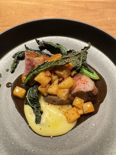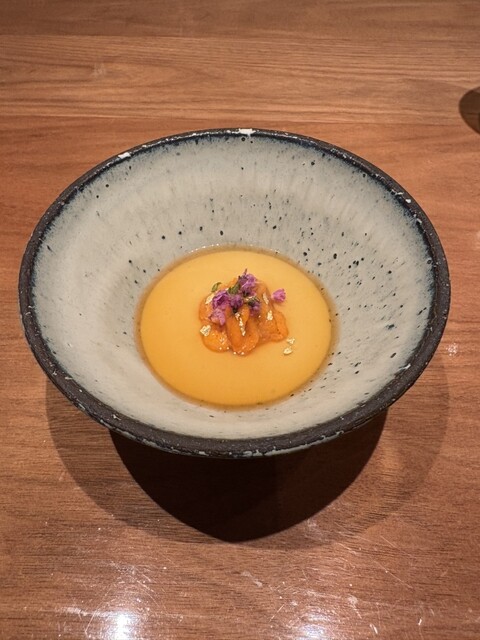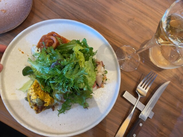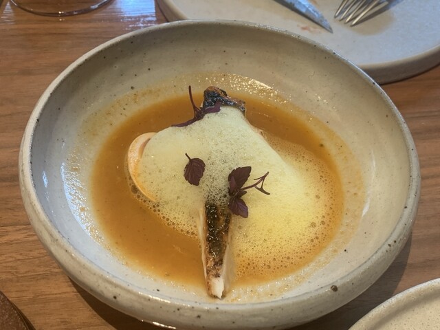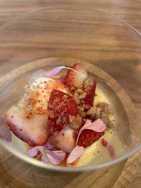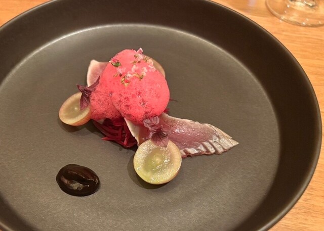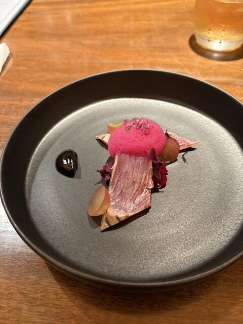 こじんまりしたお店でしたがテーブル席でゆっくりできました。カウンターは結構詰めつめな印象だったのでテーブル席でよかったな、と。ひとつ残念だったのは、ペアリングで出していただいたワイン、どれも美味しかっ...