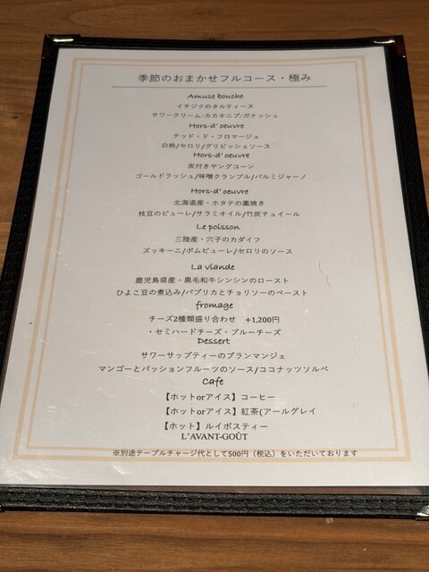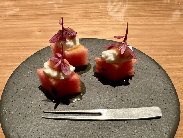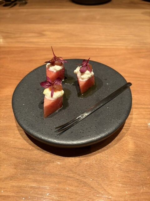 ペアリング付きのコース。昨年も同じ時期に訪問して、お店の雰囲気、接客、料理とワイン、どれも素敵で良い思い出を作れたので、今年も!と思い訪問。いちじくのアミューズから始まり、魚、肉のメイン、デザートまで...