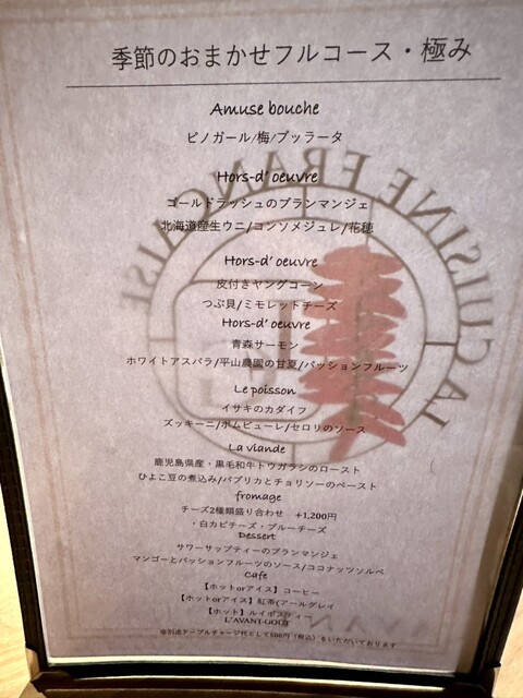 季節のお任せフルコースとワインペアリングをお楽しみいただけたことは大変嬉しく思います。