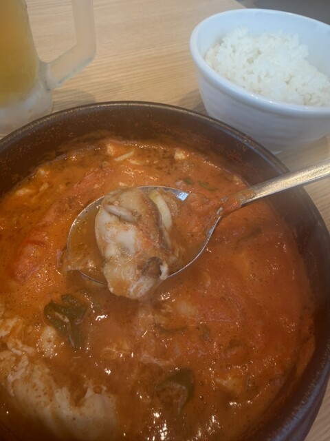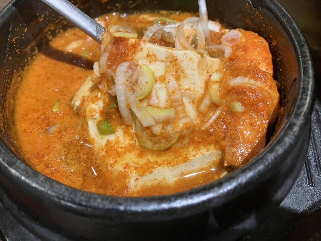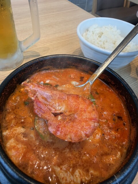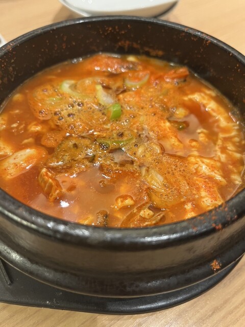 純豆腐には海老やアサリ、きのこなどが入っており魚介だしを感じながらもヘルシーで辛くて美味しかったです。