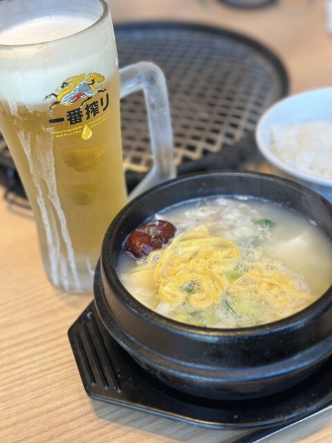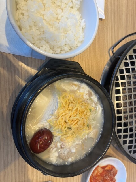 土日はどこも混んでますが、こちらは穴場かもしれません。並ばずに入れてました。他のお店と比較してコスパも良いと思います。ベビーカーも入れる広めの席も多くありました。参鶏湯純豆腐はあつあつで、美味しかったです。