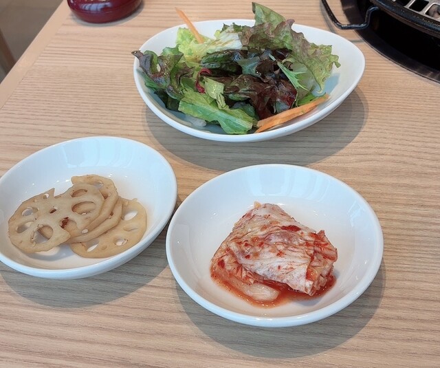 メインとご飯の他に、サラダ・プチ副菜・キムチが付きます。