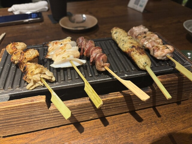 そして、焼き鳥ははじめにオーダーしたのに出てきたのは最後。そして熱いまま提供することを想定しているであろう鉄の上に乗...