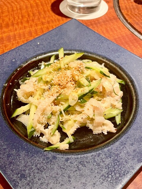 センマイ刺しはクセがなく歯切れが良い仕上がりで、箸休めに最適