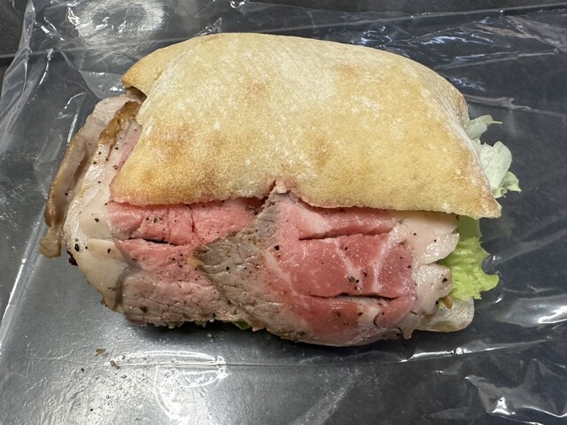 このソースが真価を発揮するのが牛サーロインのサンドウィッチ。まず肉は冷えても硬くなりすぎず、柔らかいパンと共に淀みなく噛みきれる。そしてサーロインらしい脂が確と感じられる。そこへマヨネーズが効くことにより、脂のくどさを抑えながら肉の味わいを引き立てる。