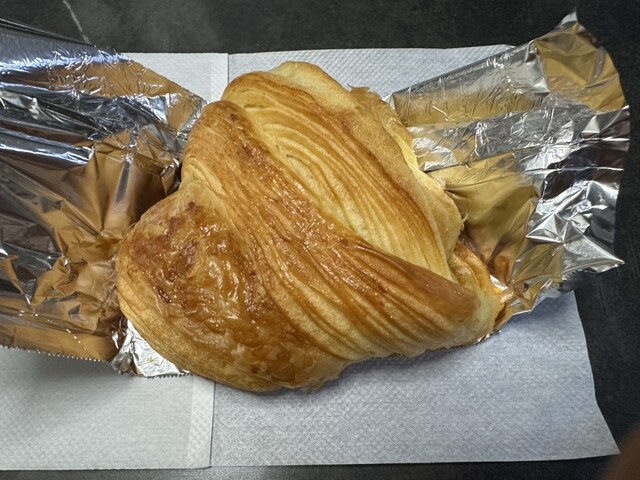 「お前に頼まれて行ったパン屋、素晴らしい店だよ。このクイニーアマン、キャラメルのような焦げ感があって面白い。レベル高いぞこのパン屋」
