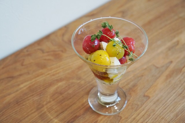 プチトマトのマリネのカプレーゼ (by お店)