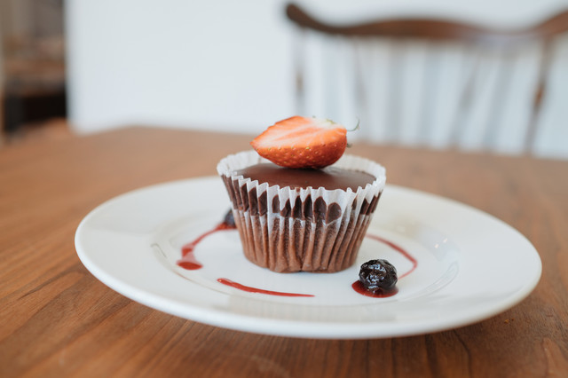 季節のフルーツのチョコレートカップケーキ (by お店)