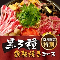 【お料理のみ】12月限定特別『黒3種の鉄板焼きコース』|懇親会・忘年会・お祝い・宴会9品