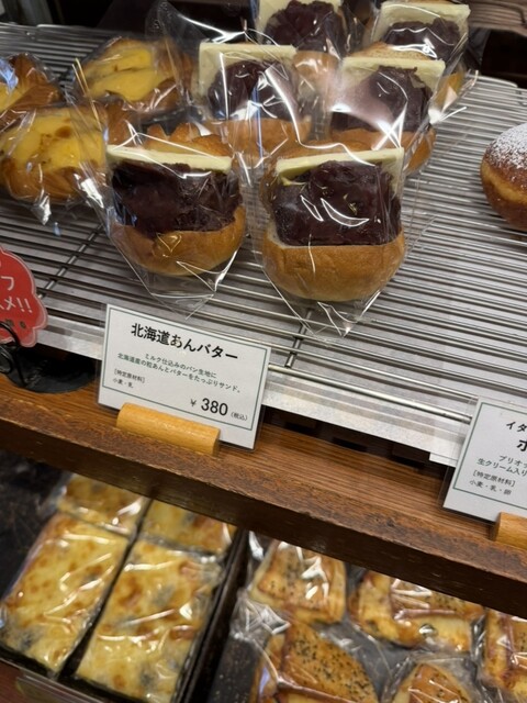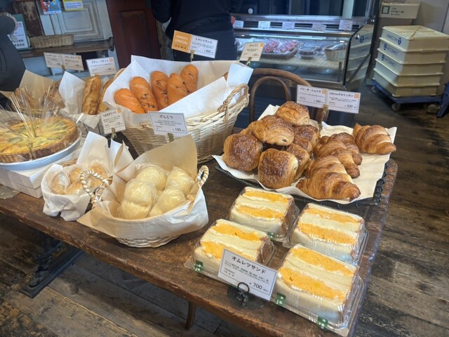 武蔵小山の駅から数分の場所にあるベーカリーカフェです。落ち着いた雰囲気で、店内でもゆっくり過ごせそうです。パンもいろんな種類があり、今回はシラスと小松菜のパンを選びました。総菜パンの種類が豊富で、また...