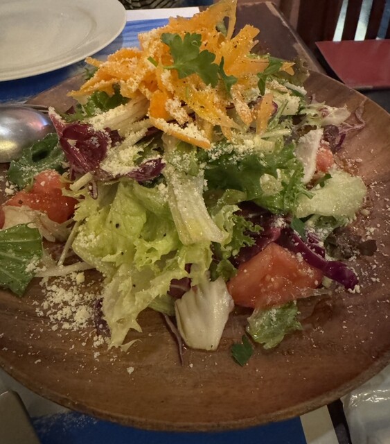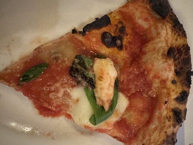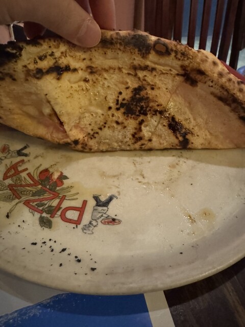 イタリア産小麦を使って長時間低温発酵させた生地は、薄いけどパリッと仕上がり、香ばしく、ピッツァとしてのボリームを感じるから不思議。(ピッツァの裏面も虎目模様で上手に焼けています)