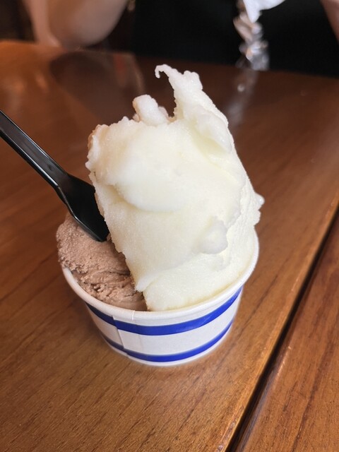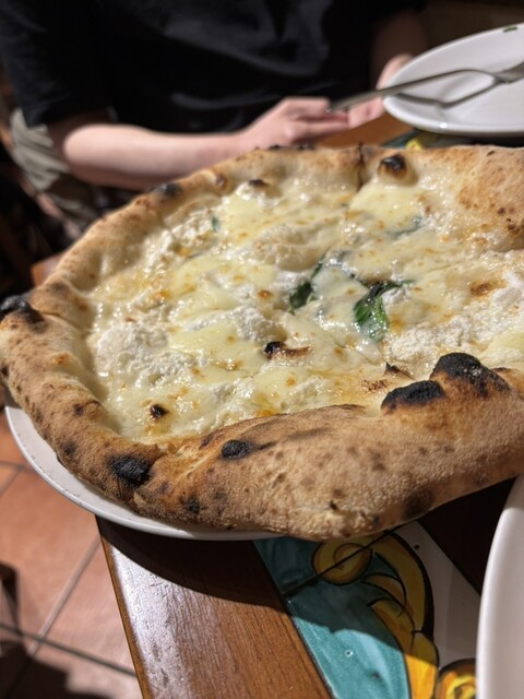マルゲリータとクワトロフォルマッジのピザと食後にジェラートをいただきました。