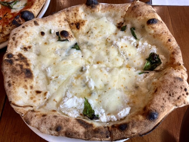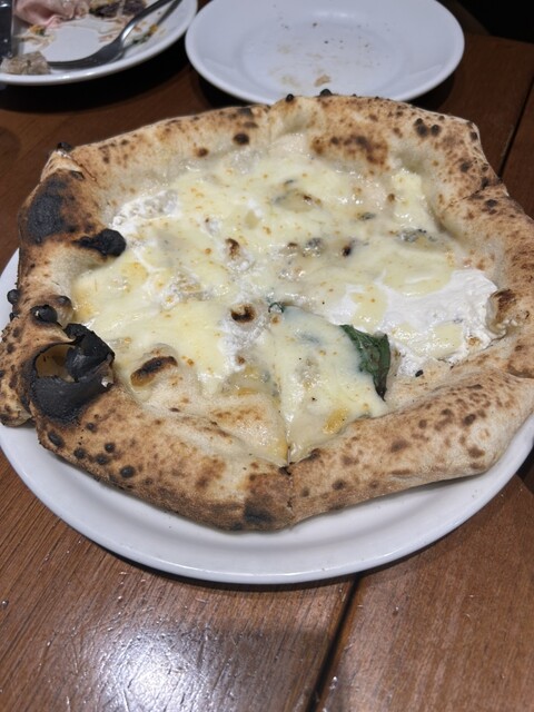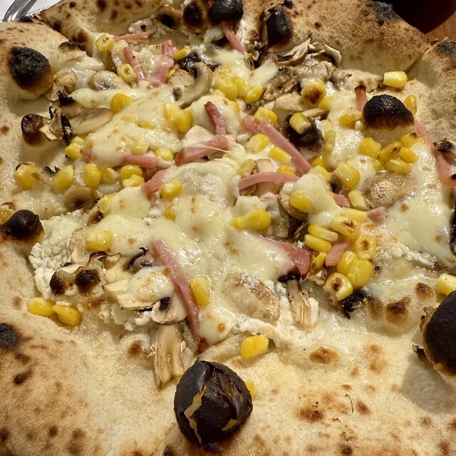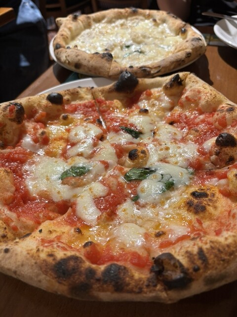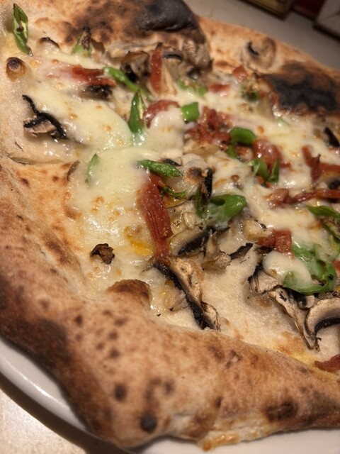 ピザは石窯焼きで、香ばしい香りがたまりません。燻製チーズの風味...