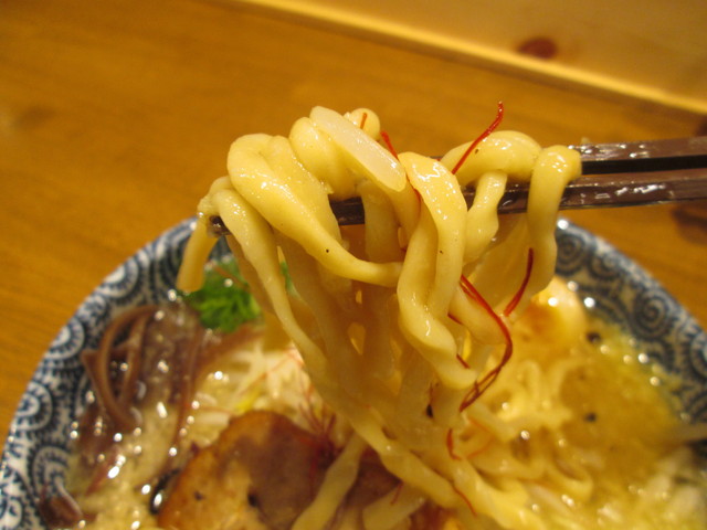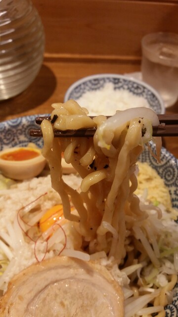 極太ちぢれ、いやねじれ麺なので背脂や生姜もスープと一緒に口の中に運んでくれる”麺の凄ワザ”(笑)。