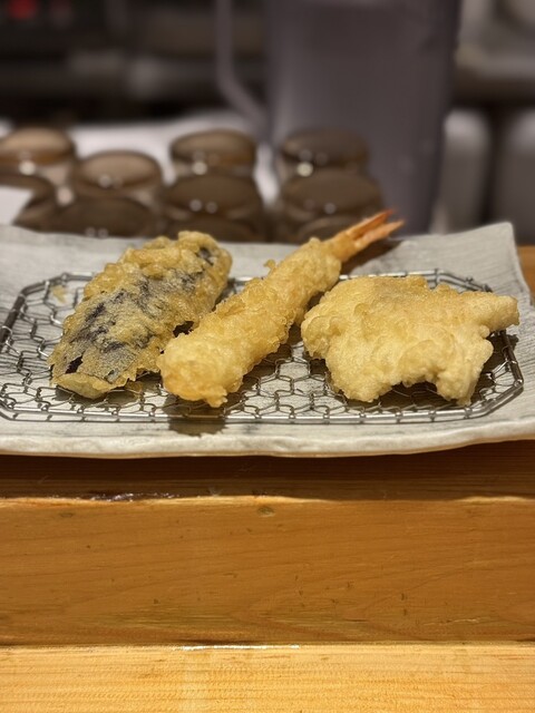 揚げたての天ぷらが2つ位づつ提供されます