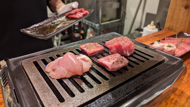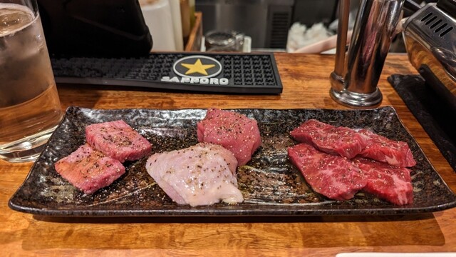当店自慢の贅沢お肉のフルコース♫ シェフのお任せで14種類のお肉をご提供!! 13種類のお肉を一切れづつスタッフが丁寧に焼いていき、最高の焼き加減で召し上がって頂きます。 コース専用の様々なタレで他では味わえない焼肉を召し上がって頂けます。 1人焼肉、デート、パーティーなど、どんなシチュエーションにも対応できるお店。 美味しいだけではなく、楽しいお店です♪ 黒毛和牛A5ランクのお肉を使用 肉、ホルモンともに鮮度にこだわり、常に真空にしているので鮮度抜群!! 誕生日などのお祝いには無料で肉ケーキもご用意できます! ※前日までの要予約、弊社HP、もしくはお電話で予約のお客様に限ります。