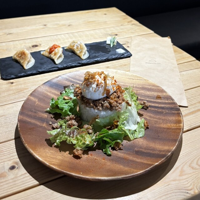 土日祝日のみ注文できるブランチメニューの中から、餃子セット1,...