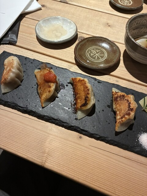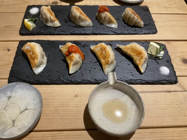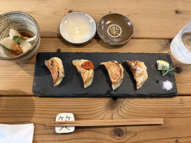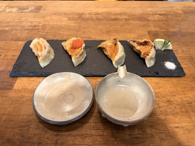 4 種の焼き餃子をそれぞれのタレで味変できるのは面...