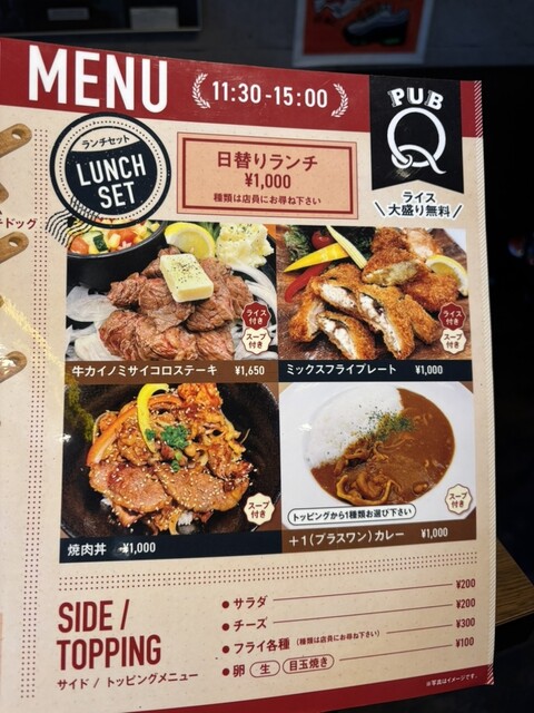 スポーツバー&ダイニングバーとして知られる「PUB Q」で、初めてのカレーランチを堪能しました。