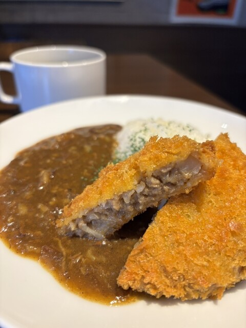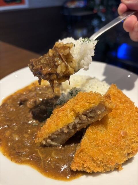 肉汁たっぷりのメンチカツとカレーの相性は抜群で、口の中で旨味が広がります。