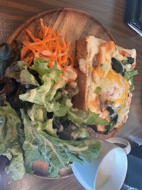 ご来店頂きありがとうございます。ゆっくりお食事を楽しんで頂けたようで嬉しいです。モーニングのトーストメニューは、お好きなトーストにサラダとスープがつけられるプレートのご用意もあります。また、ランチタイムにはパンに合うお食事メニューのご用意もあります。また違う時間帯にもいらして下さい。パンの新商品などはインスタグラムにのせていますのでチェックして頂けると嬉しいです。またのご来店をスタッフ一同お待ちしております。