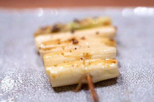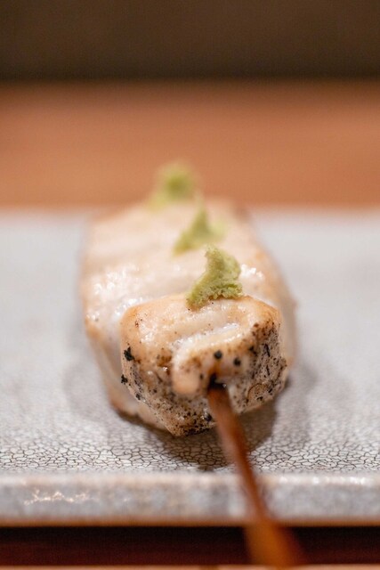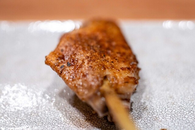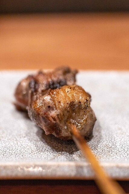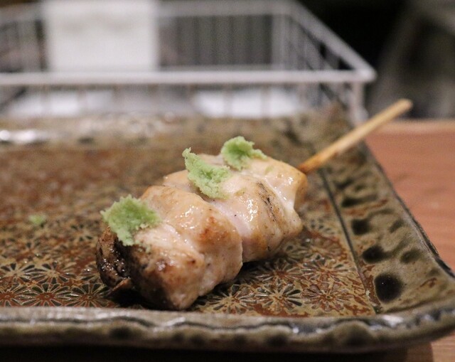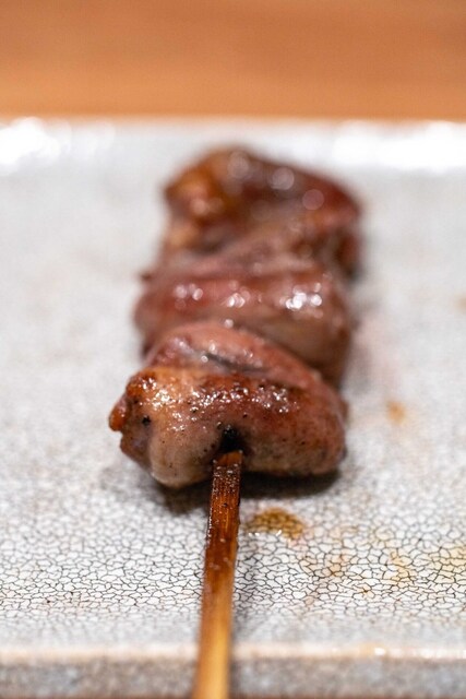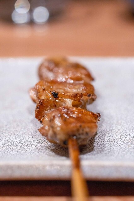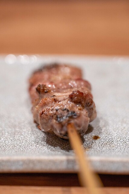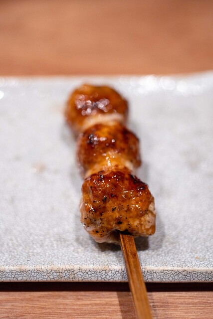 仕事終わりに焼き鳥を食べたくなり、東急目黒線に乗った。不動前駅からの2分ほど歩いた先にあり、入り口が絶妙にわかりづらい。扉を開けるとコの字カウンターが目に入る。店員さんは2人で焼き担当とその他サービス担当という感じ。店内の客層はまばらで1人の人も多い。