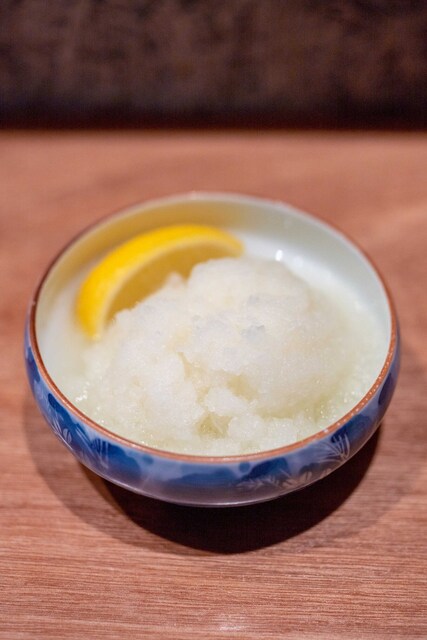 まずはビールと串7本セット、トマトを注文。ビールはややグラス細めで、ダイコンおろしたっぷりのお通しが提供される。トマトはしっかり湯剥きされて、下...