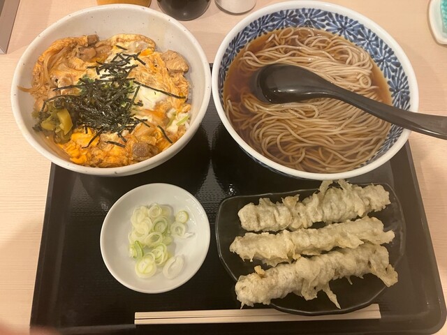 親子丼のセットに、ごぼうの天ぷらをトッピングし...