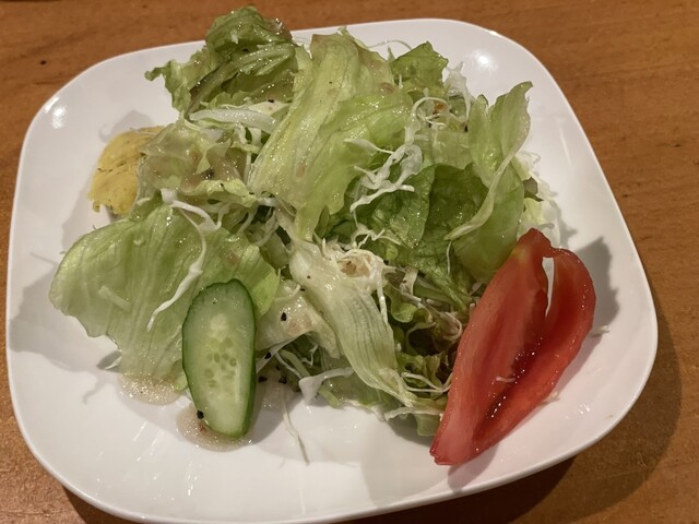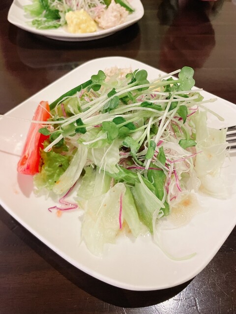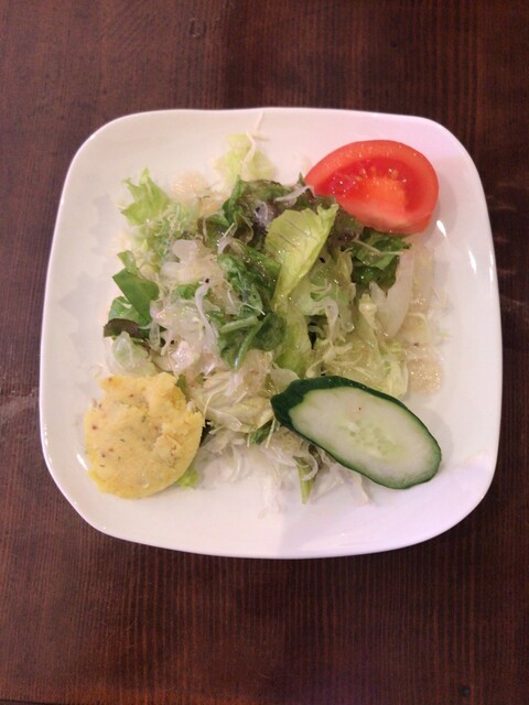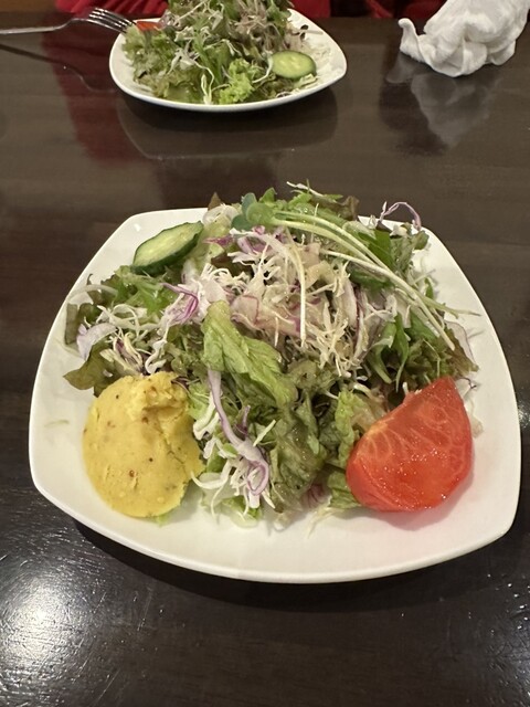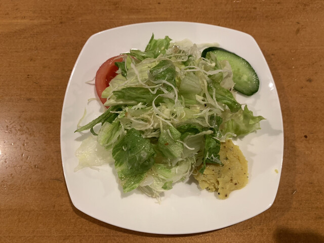 まずはセットで注文したサラダがサーブされました、さっぱりしたドレッシングがたっぷりと掛かって美味しいです、カレー味のマッシュポテトも良いですね、そして待...