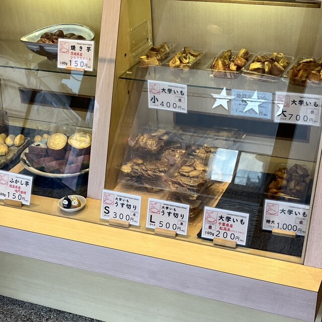 店内のショーケースの中には、大学芋、大学芋うす切り、スイートポテト、ふかし芋、焼き芋と、確かにさつまいも尽くしだった。