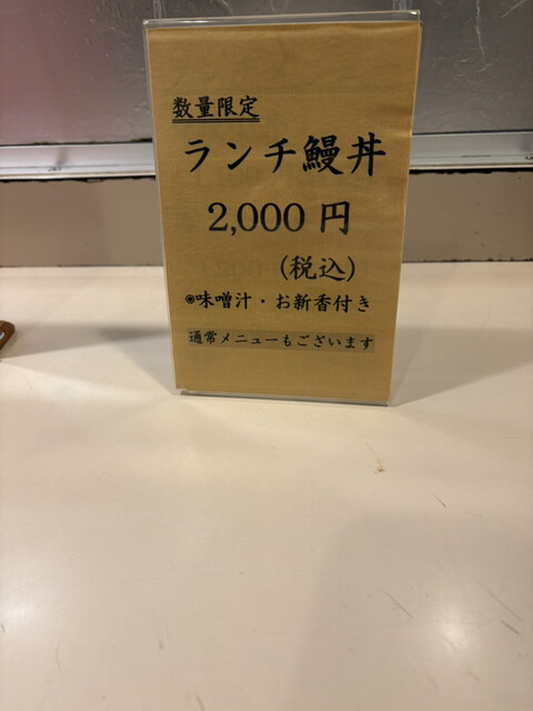 ランチで数量限定のうな丼のメニューがあり、価格は2千円程度です。