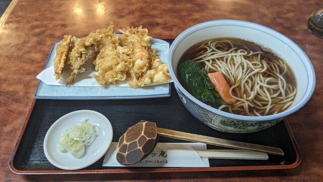 柔らかめのそばに濃いめの麺つゆ,ほんのり味付けされた油揚げは慣れ親しんだホッとする味わい。