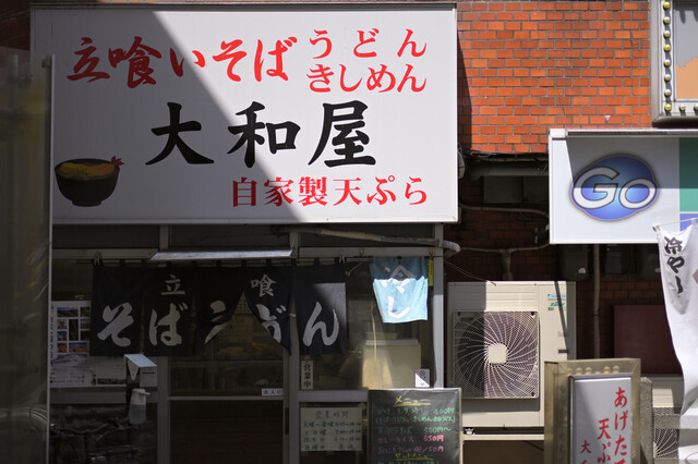 中延駅前には立ち食いそばのお店が「大和屋」と「六文そば」のふたつあります。こちらは改札を出て5秒ほどのところにある「大和屋」です。大きな白い看板と紺色の暖簾が目立ちます。 入... 詳細を見る