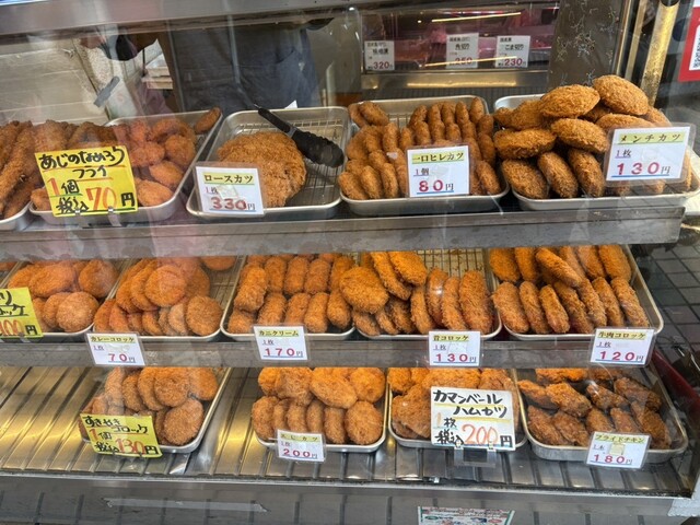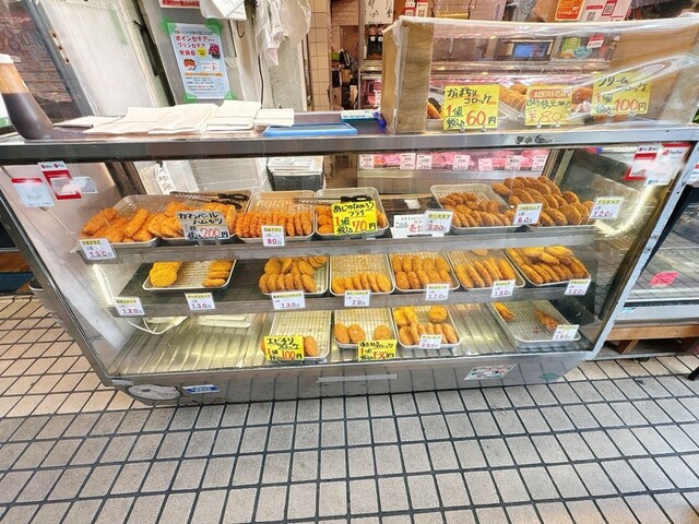 コロッケ、アジフライ等の惣菜類が超豊富!夕飯のおかずはここにきたら迷わないほどバラエティーが豊富な店だ!地元でも根強い人気を誇っている!