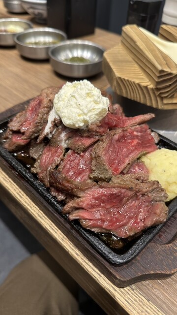 時間が平日16時と中途半端な時間にお腹が空き、1人でサクッと入れるお店はないかと歩いていたところ、こちらのお店に辿り着きました! 中途半端な時間にガッツリお肉が食べられるのは嬉しい、、、! 店内は明るく女性1人でも入りやすい雰囲気。 ハジメレアステーキ(1500円)を注文。 ... 詳細を見る
