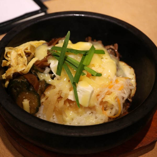 ぜひさいごに食べてほしいのは、この石焼チーズビビンバ。なんと2種類のチーズを使っていて、