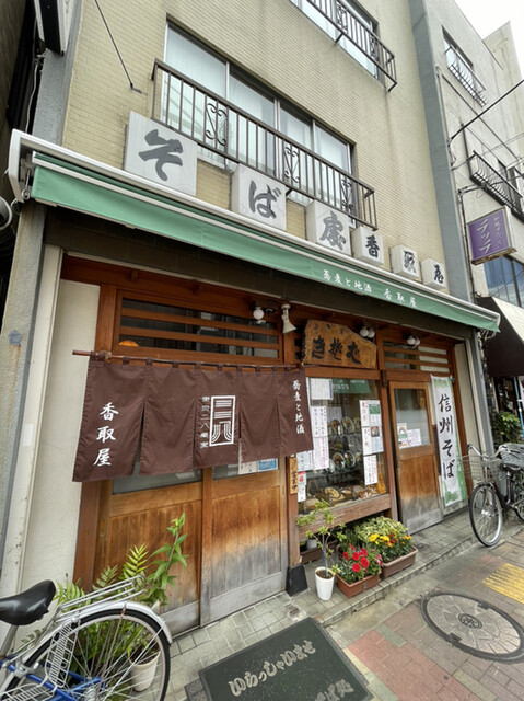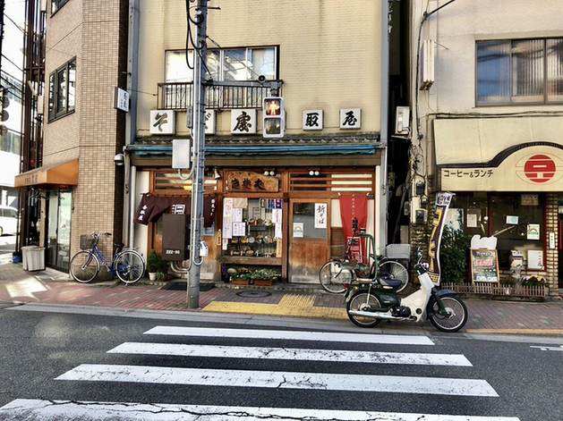 場所は、どこか懐かしい空気が流れる東急池上線・蓮沼駅から歩いて3分ほど。蒲田駅からも徒歩圏内、ちょうど両駅の中間あたりに位置するお蕎麦屋さん「香取屋」です。