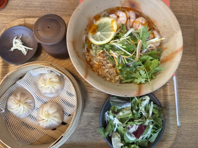 雪が谷大塚にある「ハルナツカフェ」で、ちょっとユニークな中華ランチをいただきました。オーダーしたのは、冷やしトムヤンラーメンと小籠包のセット。カフェで中華とトムヤンという組み合わせに惹かれて挑戦です。