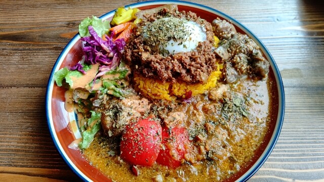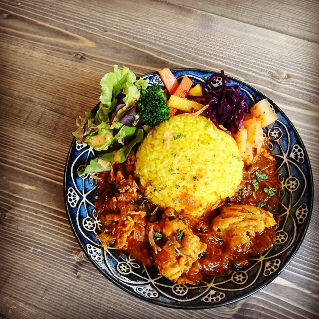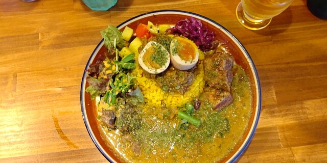 落ち着く店内でスパイスカレーなどのスパイス料理と世界のお酒を楽しもう!
