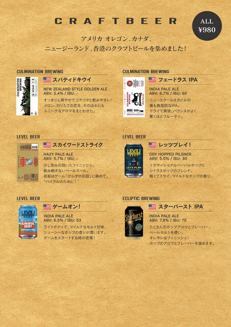 クラフトビール・ナチュールワイン・クラフトジン・プレミアムテキーラなどなど
