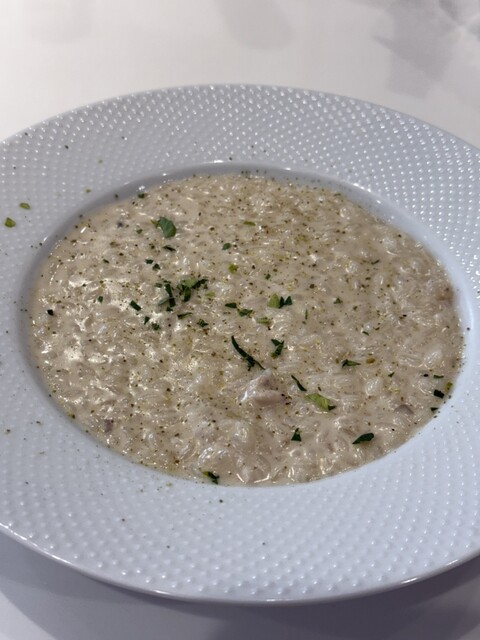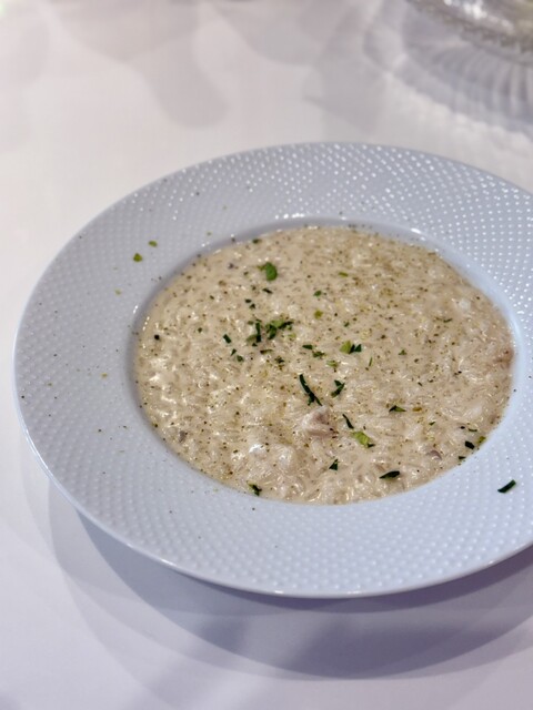 火曜日の12:00すぎに訪問し店内は3組ほど。 そのあともちらほら入店。 今回注文したメニュー 白子と実山椒のクリームリゾット 1900円 +650円 サラダグレードア... 詳細を見る