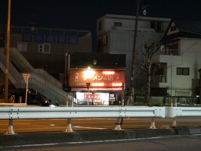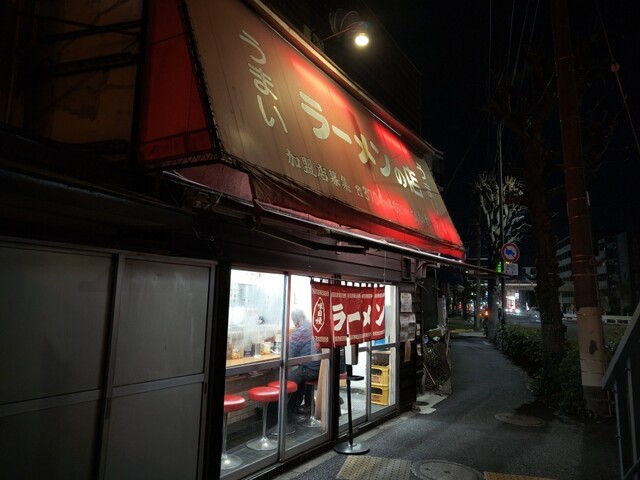 土曜の夜にたぶん25年ぶり?くらいの訪問、赤い看板の左右には『うまい』の文字、そう、見た通りこちらは以前ラーメンショップだったお店で今は独立しているようです。