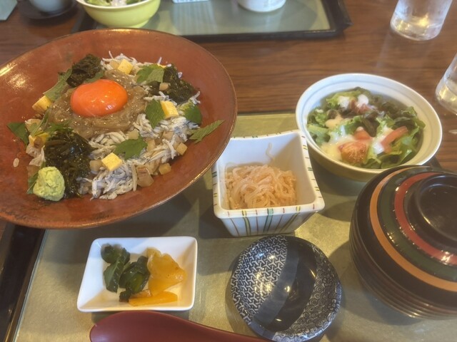 ほどなくして運ばれてきたお丼は、まさに白の競演。半分には、透明感がありキラキラと輝く「生しらす」。もう半分には、ふっ...