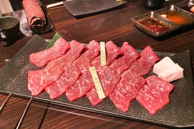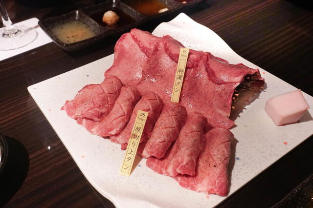 FIFTY-FIVE TOKYOに初めてご来店される方にもご友人、仕事仲間との会食にもオススメのコースです。厚切りの上タンや特選、赤身、カルビなど満遍なく様々な種類のお肉をお楽しみいただけるため、複数人でのご利用にも大変ご好評いただいております。